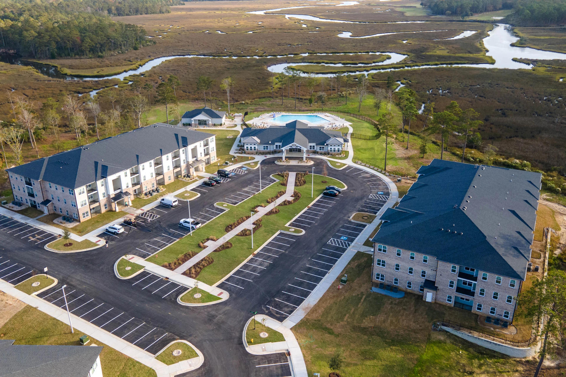 Make coming home feel like getting away at The Tides of Shallotte Apartments in Shallotte! Our community offers a range of luxury one, two, and three bedroom apartments surrounded by breathtaking views. Enjoy smart home features that allow you to control your thermostat, lighting, and locks from your mobile device. Thrive in your gourmet kitchen and with our spacious layouts, which make sure your home will be the perfect place to host and relax. Plus, enjoy USB-enabled wall outlets, soft-close drawers & cabinets, and stainless steel appliances.