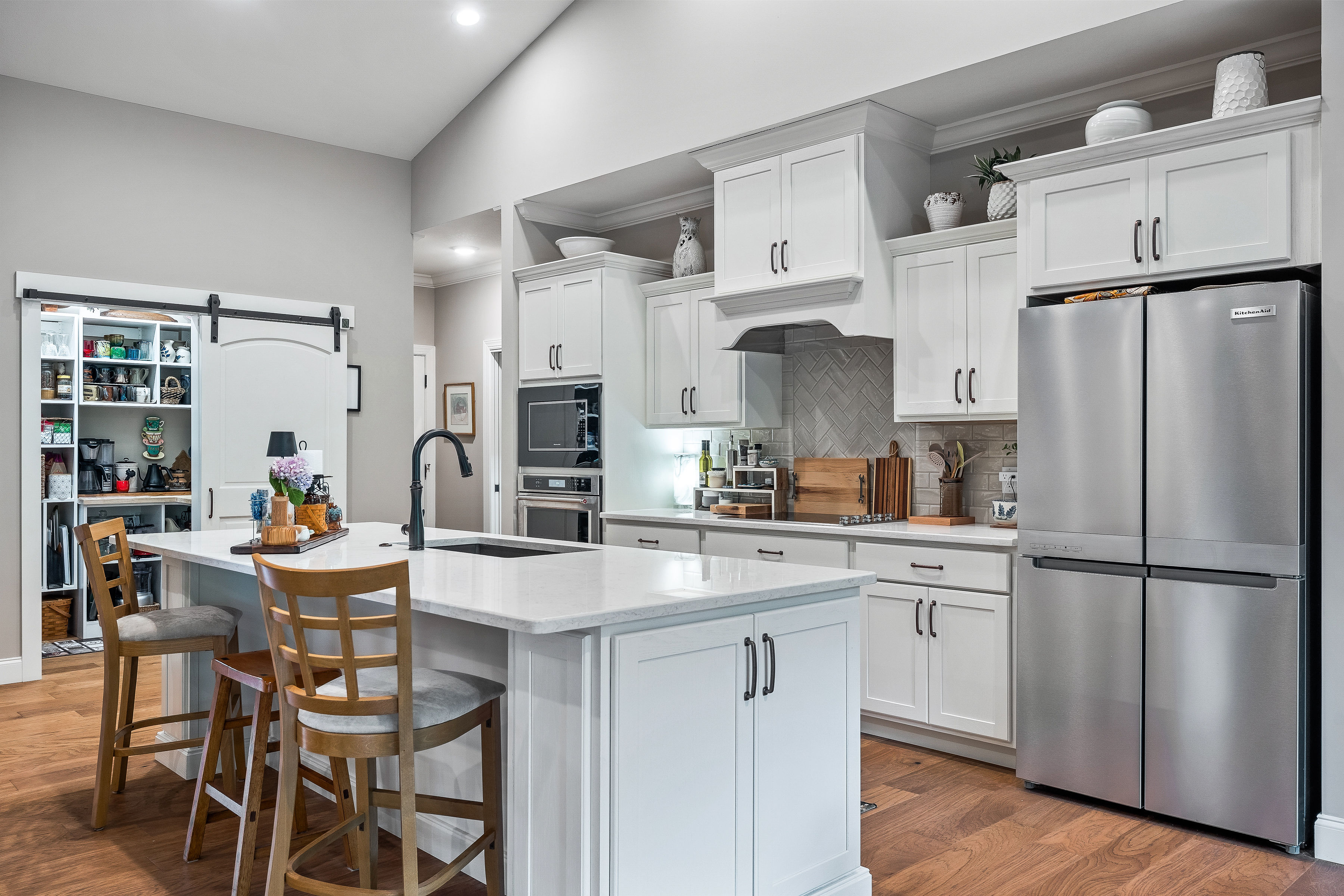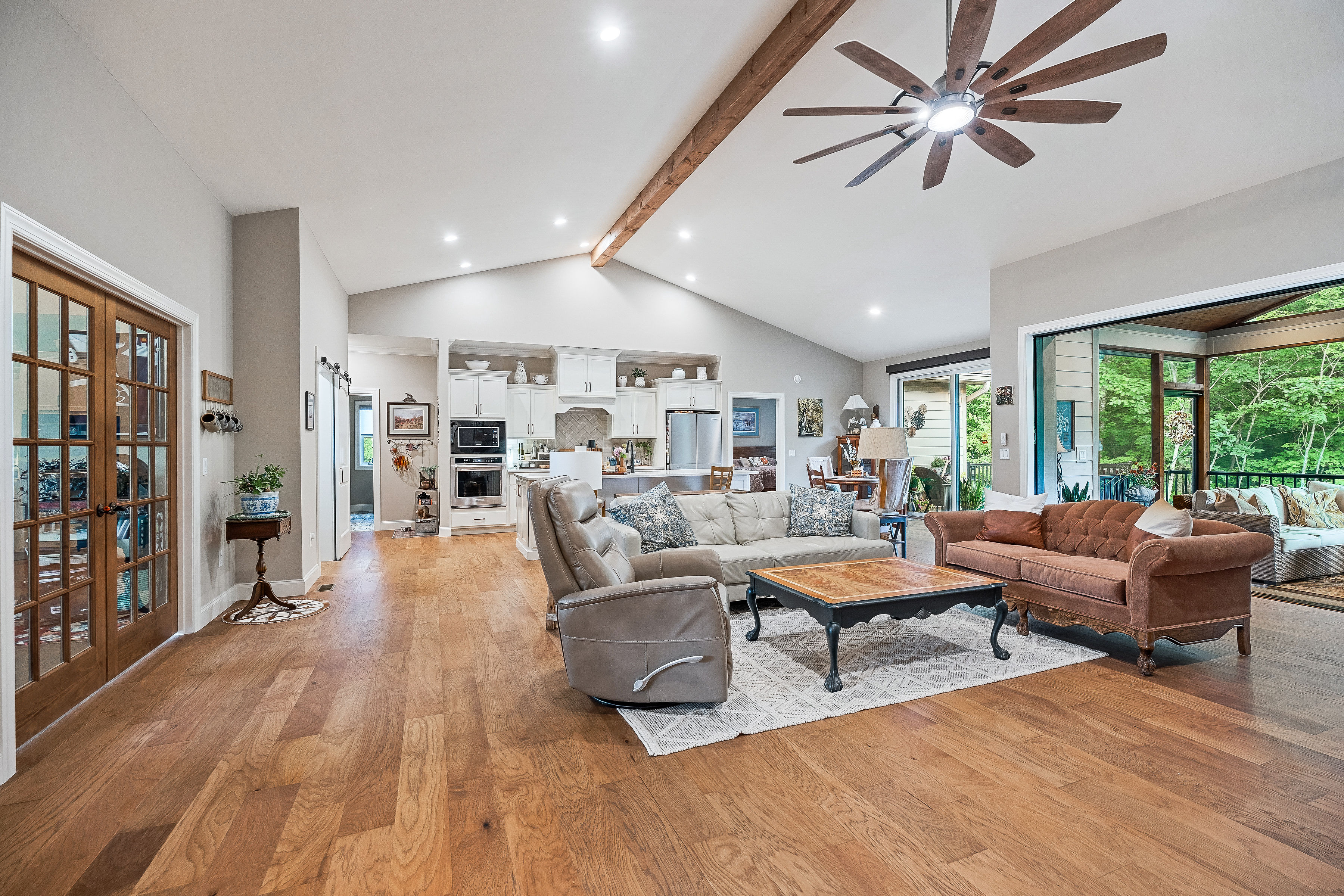 The Cavanaugh is a remarkable floor plan that includes all the features that are highly sought after in new home constructions. It’s no surprise that it has remained a favorite design, with a warm and inviting front porch. The double doors lead into the great room with impressive coffered ceilings, which opens up to the dining area and kitchen, making it an ideal place for entertaining. The home also features a spacious screened porch and a large open deck, as well as ample Andersen windows, which provide plenty of natural light and ventilation. Beautiful wood floors, granite countertops, tile backsplash, and a fireplace add to the charm of this lovely home. The split bedroom concept offers privacy, with the primary suite providing a tile walk-in shower, double vanities, and a spacious closet with custom shelving. Additionally, the home has a sizeable walk-in pantry, a generous laundry room, and a generous 2-car garage! The exterior boasts stone, cement board siding, and maintenance-free aluminum rails as its finishing touches! It’s essential to note that this is a floor plan that you can select to build within Fairfield Glade. You’ll work with Fairfield Homes to choose from the plan options and find the perfect lot to construct your dream home. The starting price is $671,000, and features and options are subject to change at any time.