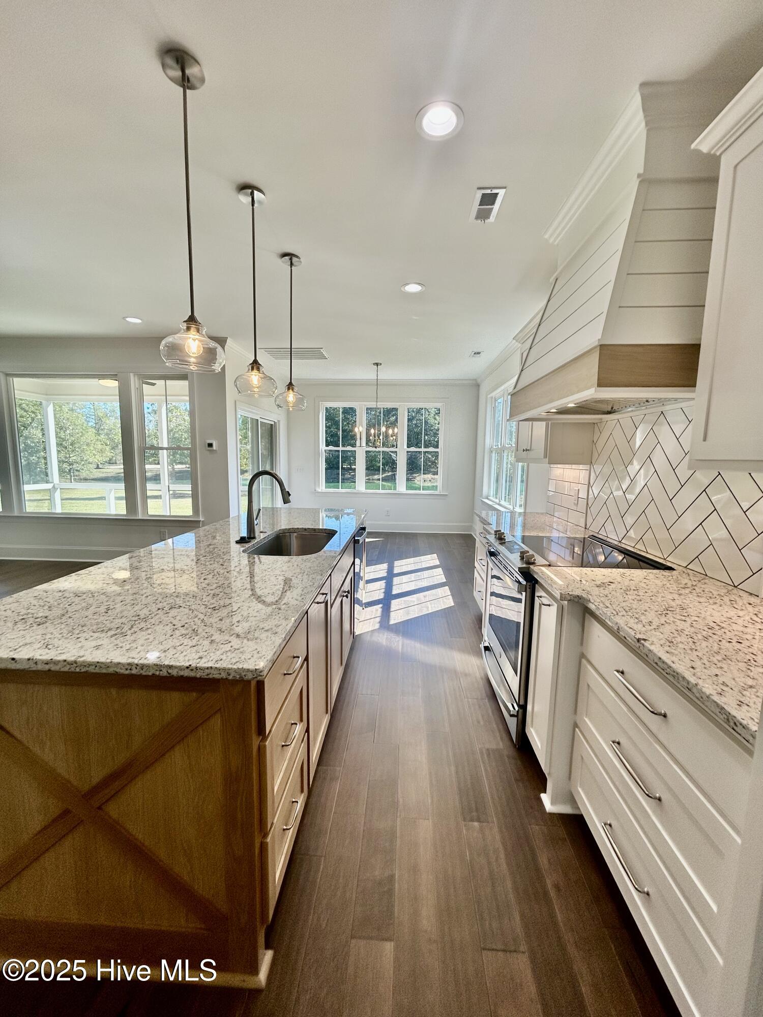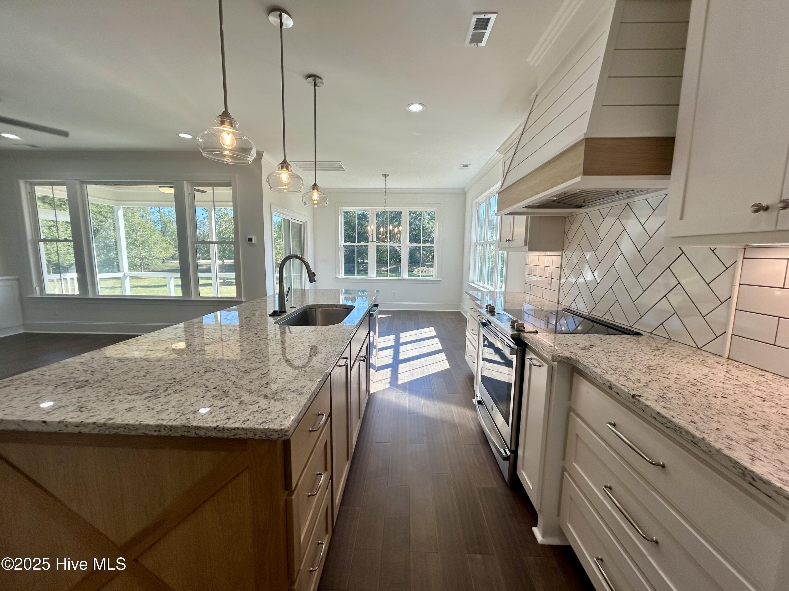 Modern Farmhouse Living Meets Coastal Convenience. A must see model called the Emerald by River Landing Builders! This modern farmhouse perfectly blends style and comfort, featuring 4 bedrooms, 3.5 bathrooms, and a spacious 2-car garage. Step through the welcoming foyer into a flexible space that can serve as a home office or cozy den. Beyond, the bright and airy great room opens to a covered back porch over looking the scenic pondideal for morning coffee or evening gatherings. The open-concept kitchen offers a large island with bar seating, abundant cabinetry, and a walk-in pantry for effortless organization. The adjacent breakfast nook is flooded with natural light and overlooks the porch and backyard, creating an inviting space for casual dining. The main-floor primary suite provides a peaceful retreat with windows on two sides. The ensuite bath includes dual vanities, a soaking tub, a walk-in shower, and a generous walk-in closet with built-ins. Upstairs, three additional bedrooms each feature walk-in closets. Two share a Jack-and-Jill bath, while the third has a private bath nearby. A spacious loft provides the perfect spot for a media room, game area, or secondary living space. Located in the desirable River Landing community, residents can enjoy optional memberships that include two top-rated golf courses, a fitness center, pools, tennis and pickleball courts, and a clubhouse for social gatherings. Scenic walking and biking trails lead to the River Lodge, where you can kayak along the Northeast Cape Fear River. Perfectly situated for both work and play, this home is just 35 minutes from Wilmington and 90 minutes from Raleigh, offering easy access to two major airports and some of the best medical facilities in the state. Plus, the beach is only about 45 minutes away, making this the ideal blend of elegance, function, and relaxed coastal living.