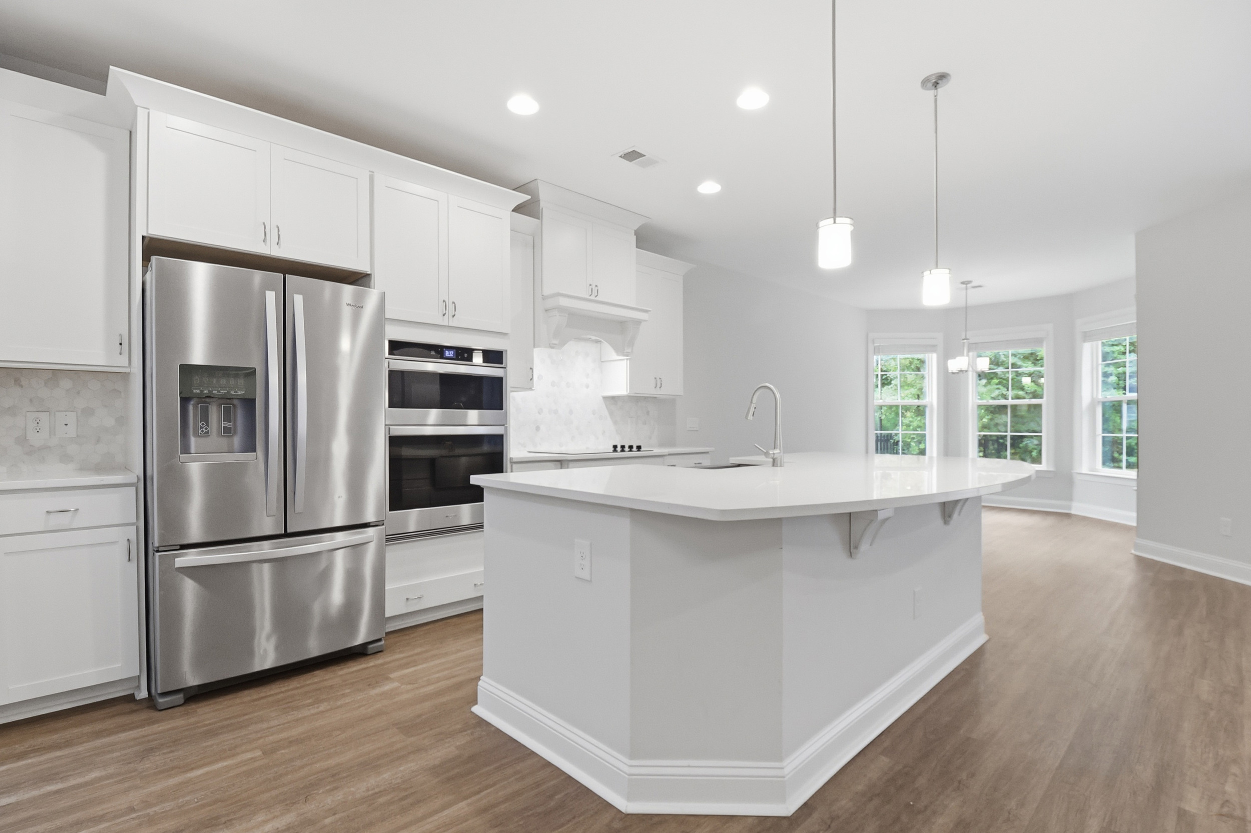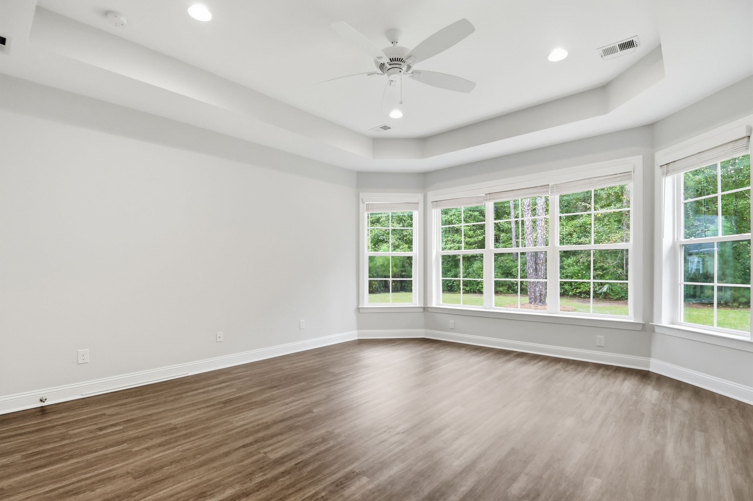 Welcome to 40 Washington Way, where nature and modern comfort meet in the desirable Waterways community. This beautiful single-story home offers open-concept living and sits across from and behind wooded preservation, providing a peaceful, private setting. The inviting rocking-chair front porch with brick accents and double-door entry opens to a bright, neutral interior with elegant tray ceilings in the living room and owner’s suite. Enjoy a chef’s kitchen with stainless appliances, a farmhouse sink, wood hood, and bay-window breakfast nook. The spacious owner’s suite also features bay windows and a serene view. Relax or entertain on the screened rear porch with triple sliders leading from the living room, overlooking a large private backyard. Extras include a kayak storage system in the 2-car garage. Just a short walk to Lakewood Pavilion and minutes by golf cart to the marina, pools, fitness center, and trails—embrace resort-style living surrounded by nature!