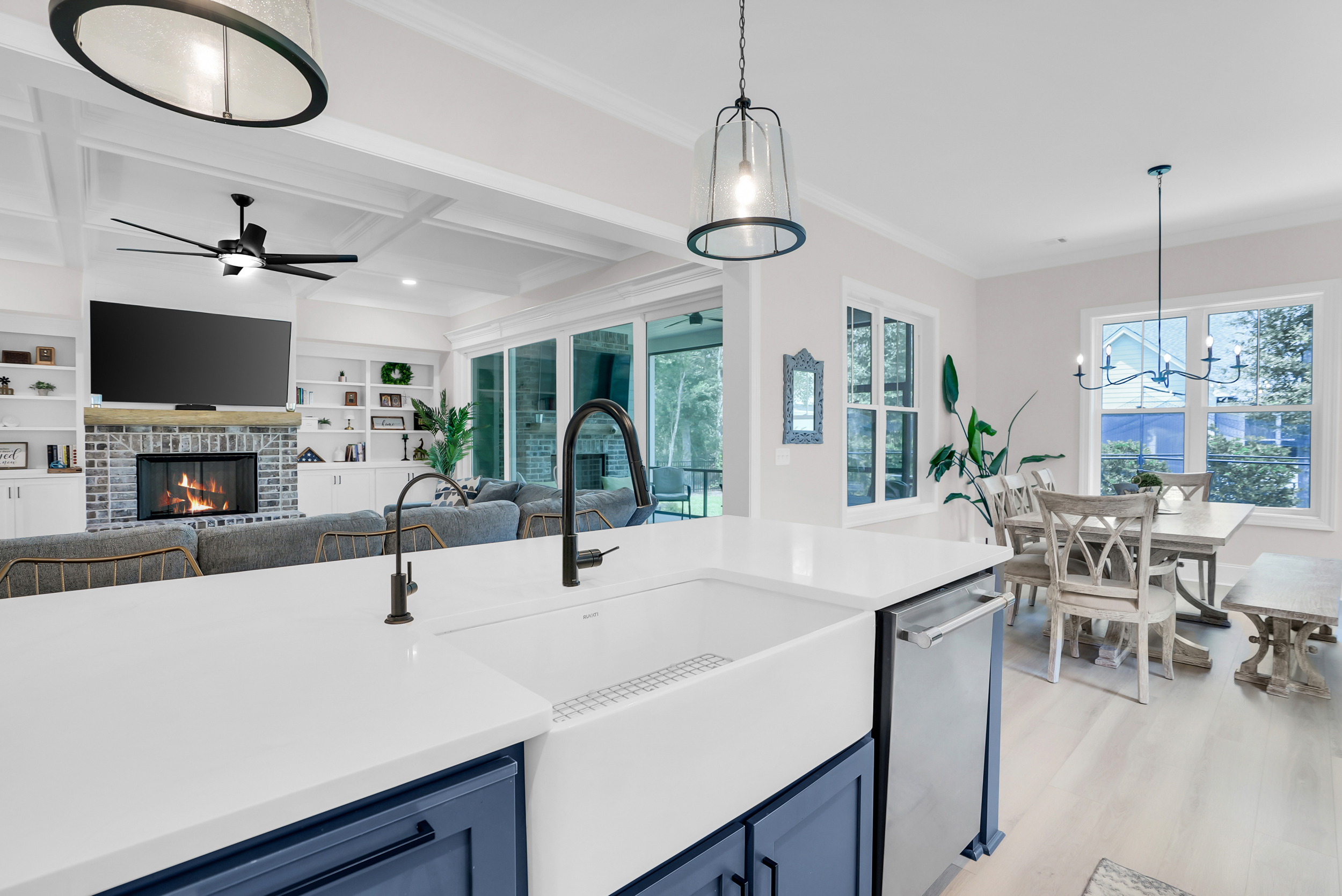 Exquisite Custom Home Near the Marina – Enjoy Low Country charm with modern upgrades in Marina Village. Custom kitchen features floor-to-ceiling cabinets, gas cooktop, farmhouse sink, pot filler, and quartz counters. Amenities include tankless water heater, whole-house reverse osmosis water system, 10′ ceilings, 8′ solid doors, EV plug, and gutters. Cozy fireplaces in great room and screened porch. Primary suite boasts accent wall and custom trim; plus a coffered ceiling in the great room. Custom shelving in all closets, tiled showers, laundry sink, and walk-in attic storage. Energy-efficient spray foam insulation. Flexible layout with office/5th bedroom and oversized bonus/6th bedroom. Privacy hedge in place for a serene backyard retreat. Batting cage in the backyard can stay or could be converted into a putting green.