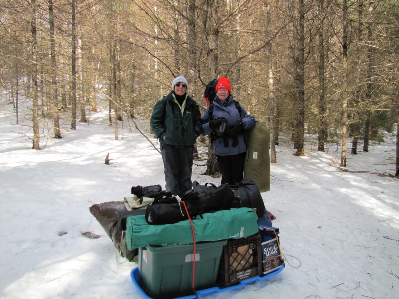 Choosing the right gear is as essential to winter camping as choosing the right campsite. Only Maureen and Renee had sleeping bags designated for below-freezing conditions. Amy improvised with double bags, one inside of the other, to keep adequately warm. Although there are tents specifically designed for winter camping, the women used a sturdy, all-purpose tent just spacious enough for the three of them. They packed their bags along with the tent and camping equipment onto two plastic sleds that they planned to pull along behind them. They had pre-cooked chili for the evening meal, and carefully wrapped eggs in insulating material, planning to keep them in the tent with them during the night to prevent freezing. One of the things they knew about camping from their forays with Leslie was that you take along only what is essential, but simple things, like being able to sit above the ground, can fall into that category. So they also included a small folding table and several chairs. One of the most essential supplies was water, which they carried in a large plastic jug, planning to thaw it out over the fire. Their personal clothing items were carried in backpacks.Winter Camping Always Be Prepared